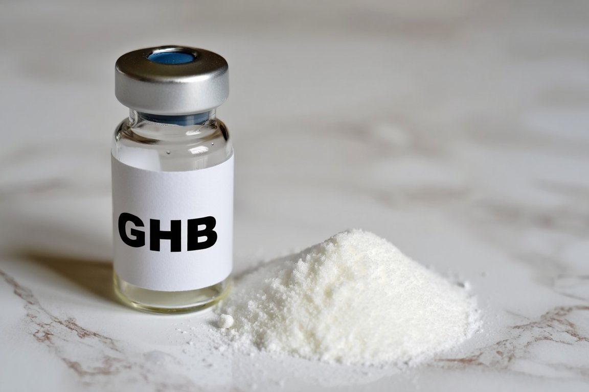 Флакон и жидкостью ГХБ и порошок